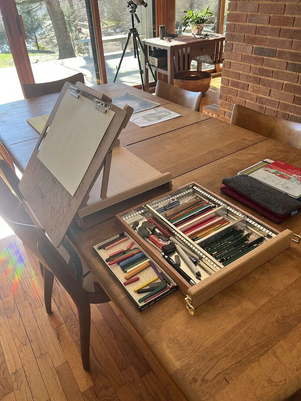 - Table Easel with 2 Trays: Features Two Thickened Sliders with Slots to Stabilize Canvases Better and Accommodate Both Thin and Thicker Stretched Canvases. The Versatile Studio Sketchbox Tabletop Easel by MEEDEN Holds All Your On-the-Go Painting and Drawing Supplies, Perfect for Studio or Plein Air Artists, Art Students, and Beginners.