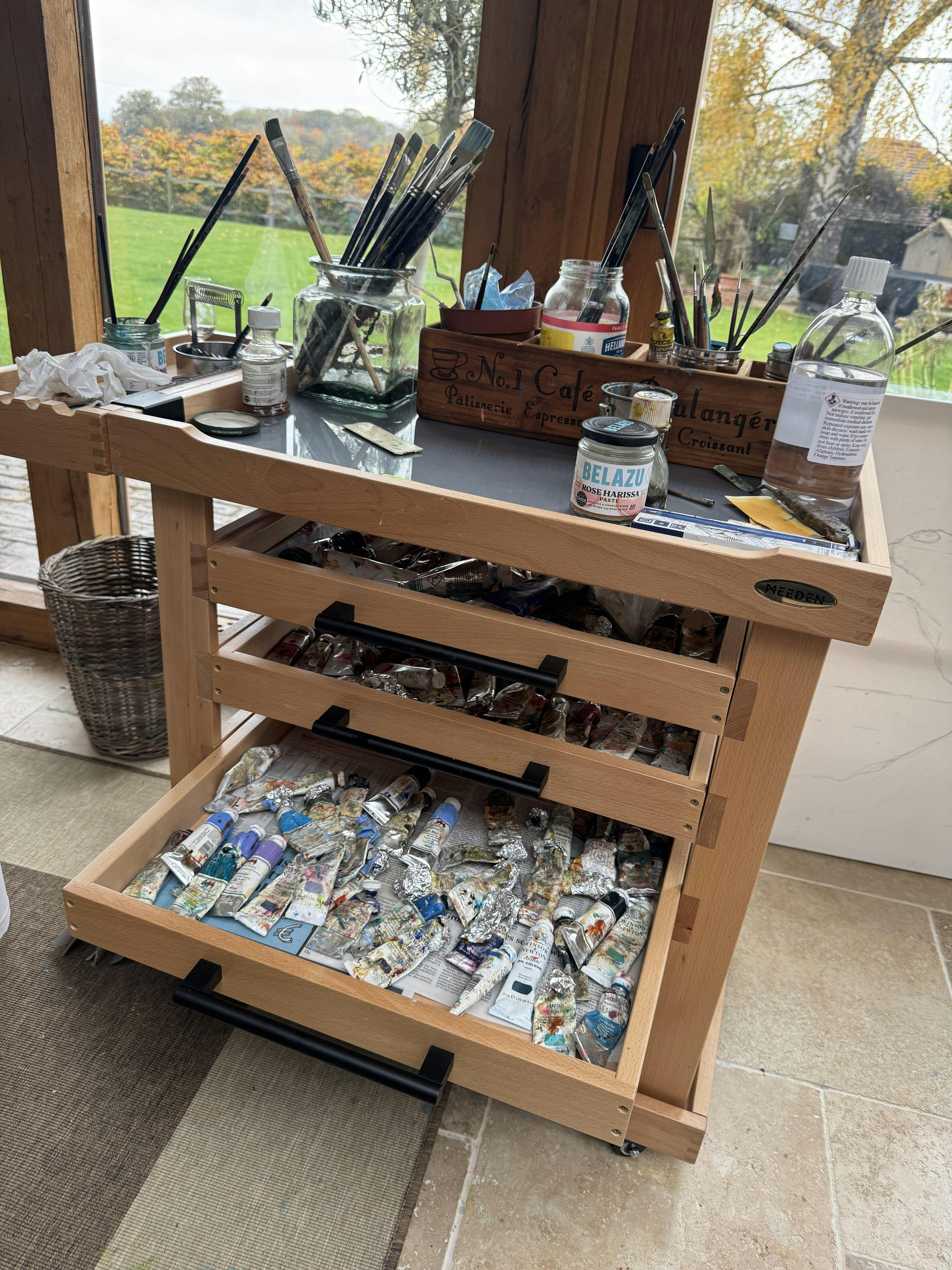 The three-tiered drawers are designed for effortless access, with smooth glides that make reaching your art supplies a breeze. Their spacious compartments provide ample room to store and organize your materials, ensuring a clutter-free workspace and enhancing your creative efficiency.