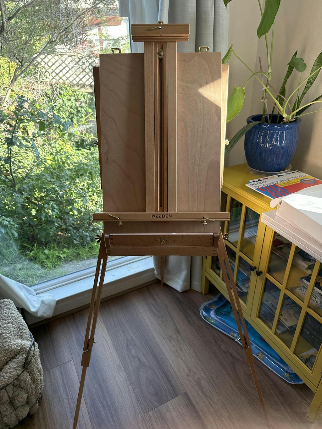 - QUALITY FRENCH EASEL: Handcrafted of solid European beech wood with natural texture and anti-rust metal hardware. Fully adjustable height from 57" - 72", suitable for sitting or standing positions. 2-layer storage drawer provides a larger space for your tools to meet your various needs. The shoulder strap makes it portable and an ideal plein air easel!
