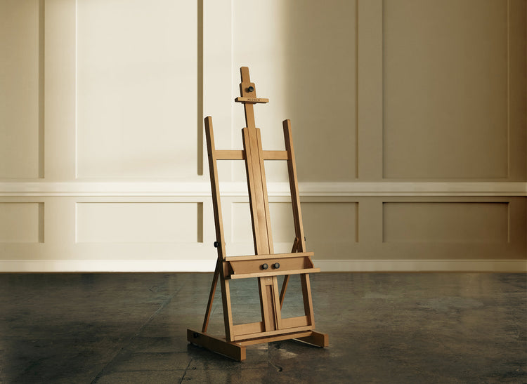 Artist Heavy-Duty Easel: Crafted from seasoned beechwood, this large easel supports canvases up to 78" high and 44 lbs. It features a smooth and elegant surface, ensuring long-lasting protection.