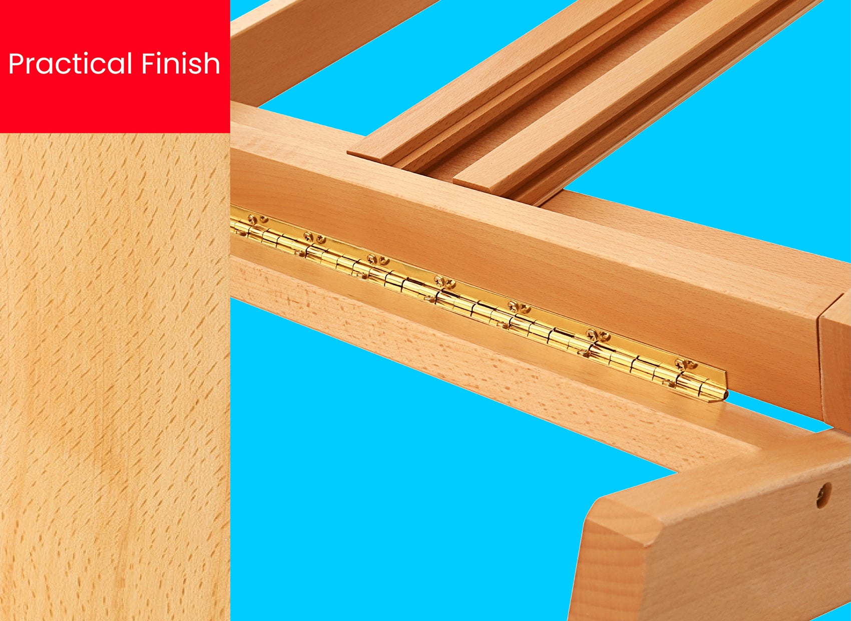 This painting easel is crafted from premium European beech wood, featuring an oil-polished smooth surface that boasts a rich texture and exceptional stability. The clearly visible wood grain highlights its quality, and the robust hardwood construction ensures a stable experience, providing a reliable foundation for your artistic endeavors.