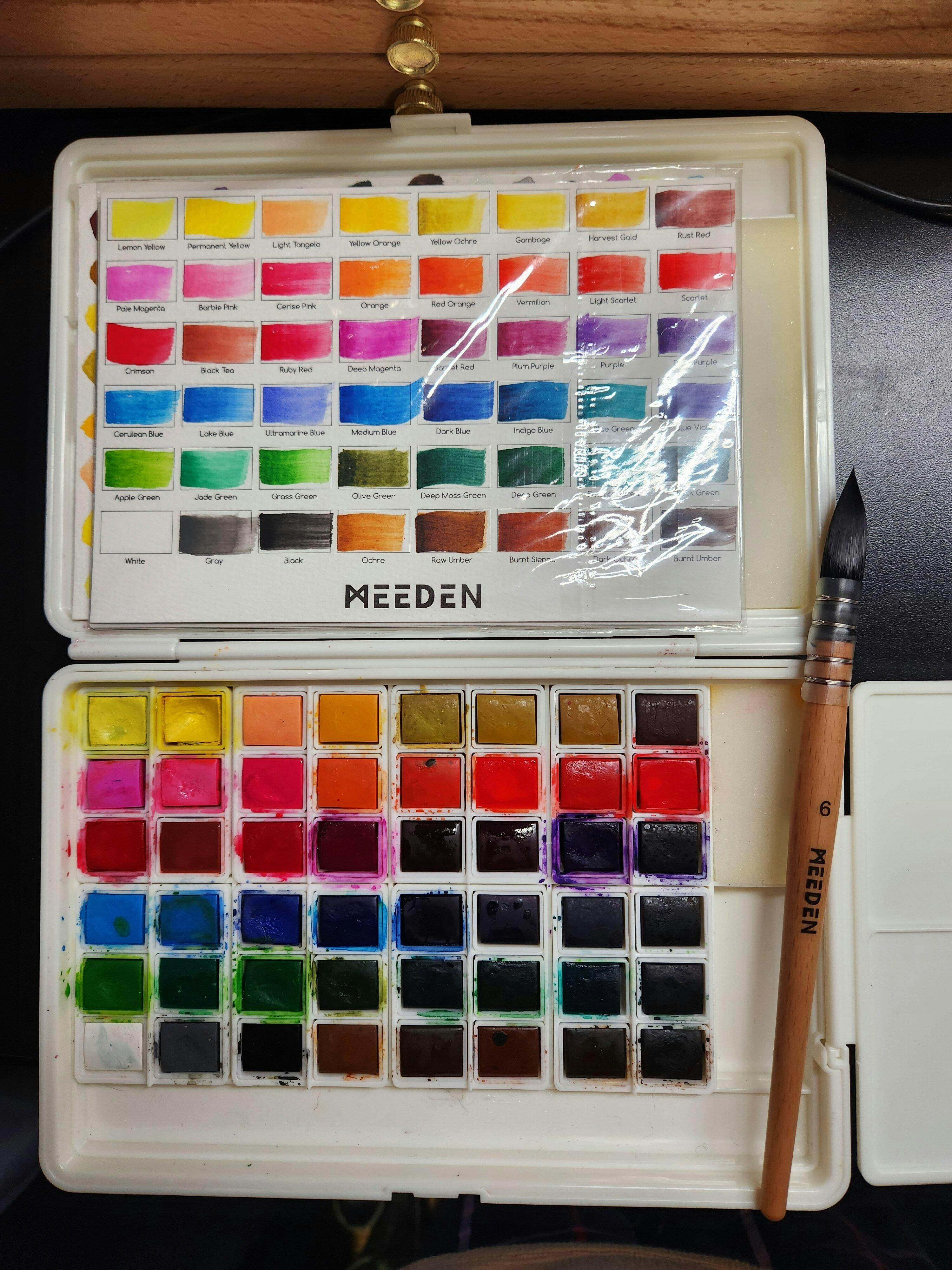 Unleash your inner alchemist with 48 classics, 30 dazzling metallics, 6 glow-in-the-dark fluorescents, and 12 dreamy macaron hues. From sunlit landscapes to cosmic fantasies, this set’s intense pigments blend effortlessly—layer translucent washes, build bold textures, or make neon details pop.