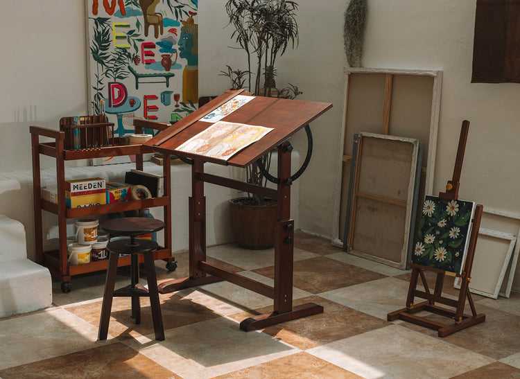 This drafting table is the perfect choice for any artistic workspace, offering both functionality and style. Its rich walnut finish not only adds a touch of classic elegance but also seamlessly complements other accessories in the same color palette. By pairing it with matching furniture and decor, you can create a sophisticated and refined environment that inspires creativity and elevates your art to new heights. Whether you're a seasoned artist or just starting out, this table helps you build a high-end, elegant space where your ideas can flourish.