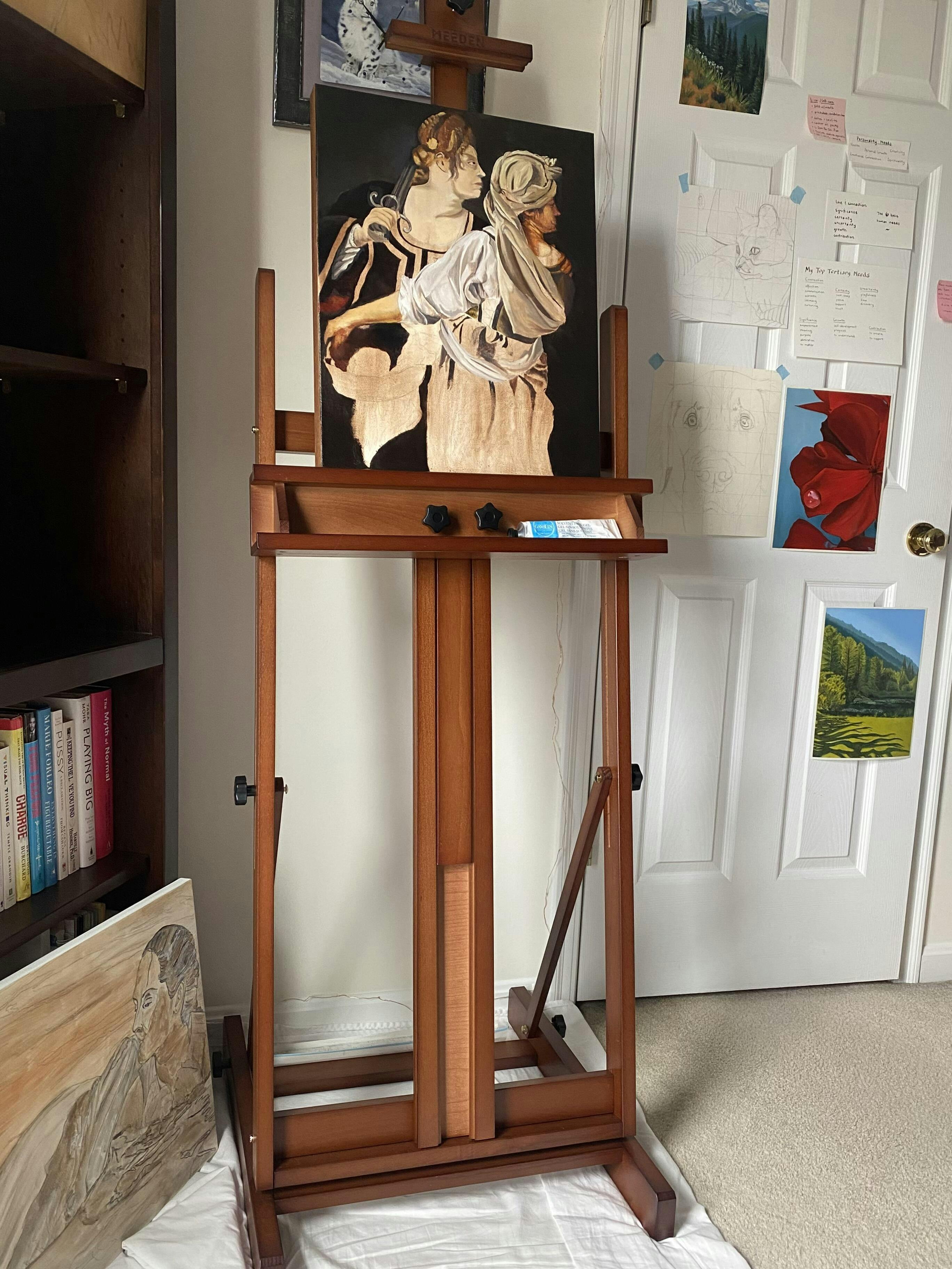 Ideal for taking to my art group meeting, where we paint on the tables provided, as I can get the painting at just the right height and angle. I suffer from quite bad back pain and this easel solves the problem very well. I very much enjoy all my Meeden products.