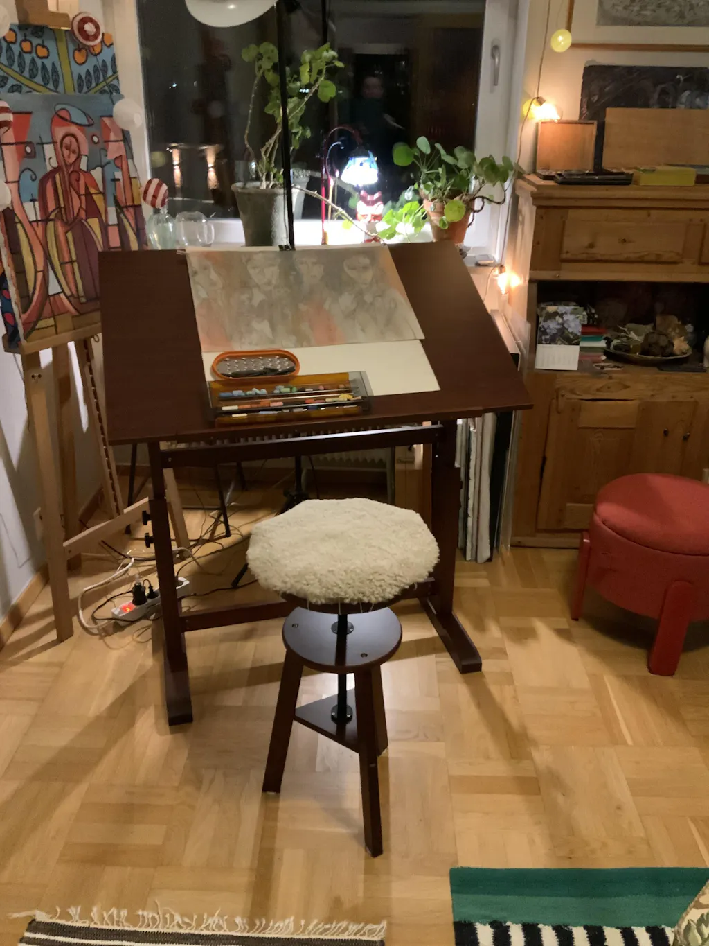 The easel is very sturdy— and easy to adjust. In thrilled with the fact that is goes flat. This is perfect for the way I pant.