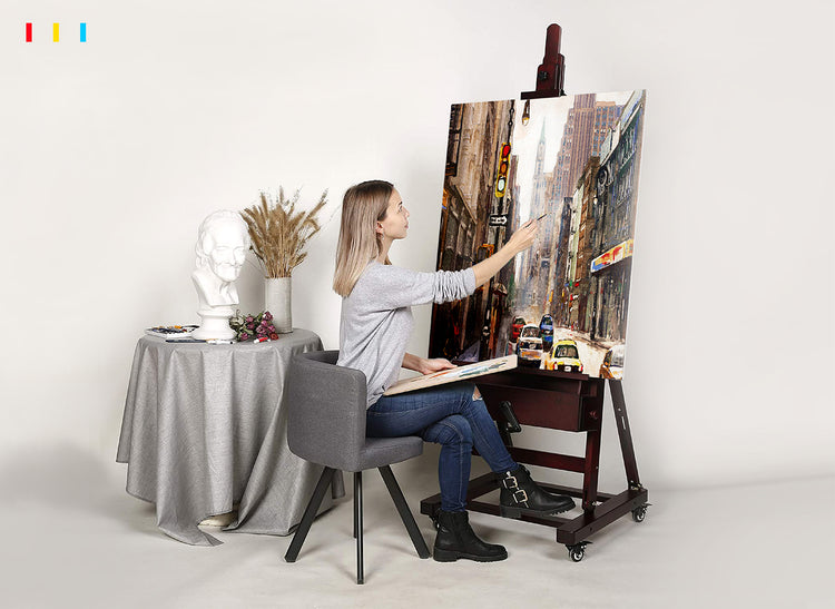 What surpasses the ordinary easel is not only the thickness of the wood but also upgraded the height adjustment method of the crank control. The maximum weight of the easel can be 41 kg/90lbs,the height can be easily adjusted by the crank not affected by item weight, and the maximum canvas height is 83".