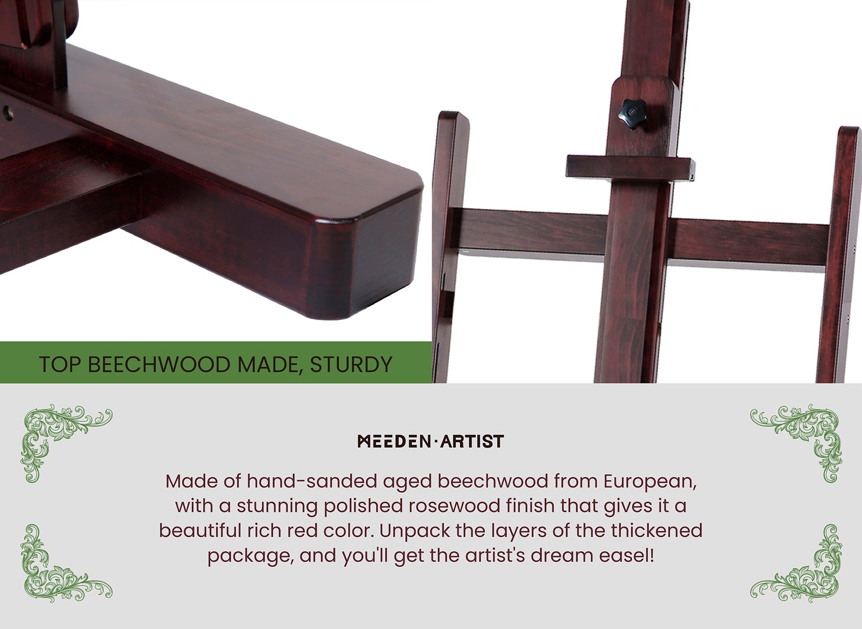 - Durable and Lifetime Guarantee: The engineered bracing system, hinges, and exquisite brass accessories are designed to last a lifetime, no matter how many times you adjust the easel. We promise to replace any part from any MEEDEN easel or desk that proves defective with normal use within the lifetime of the original owner.