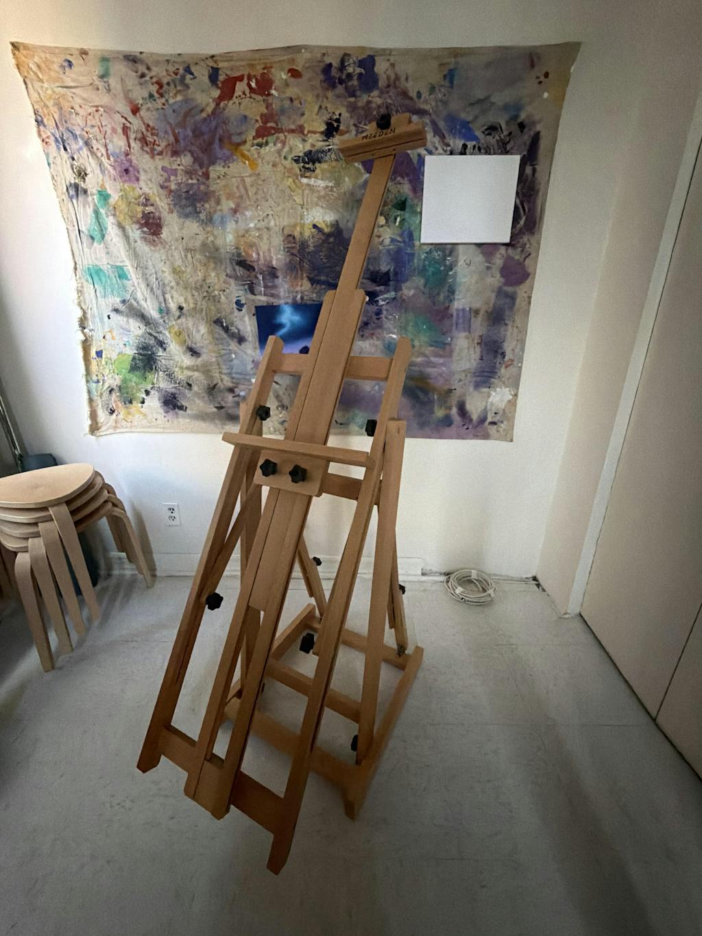 Crafted from premium European beechwood with a hand-sanded finish, this H-frame easel is built to handle your boldest visions. Whether you’re tackling a 77” mural or layering delicate watercolor washes, its rock-solid stability and silky-smooth adjustability make it a studio essential.